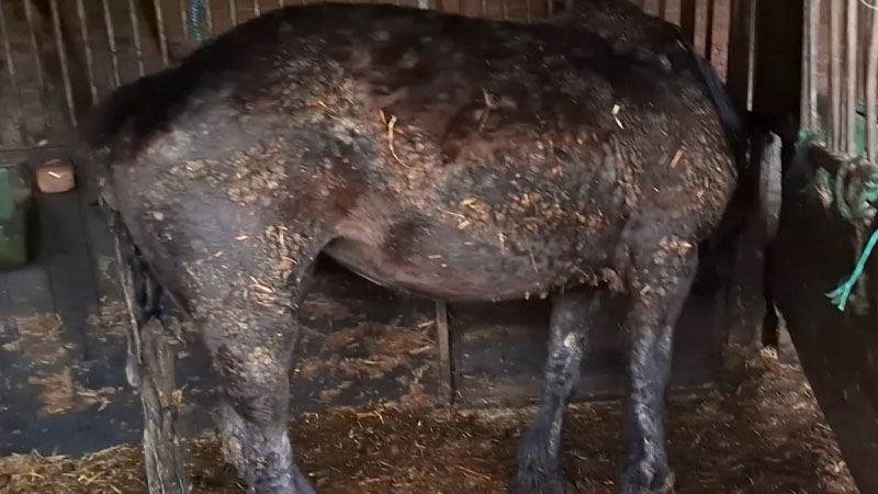 De toestand van één paard was zo kritiek dat een dierenarts besloot het dier direct te laten inslapen. De twee andere paarden zijn in beslag genomen, maar ook één van hen moest enkele dagen later worden geëuthanaseerd. Het derde paard herstelt naar omstandigheden goed en zal binnenkort een nieuwe plek krijgen.